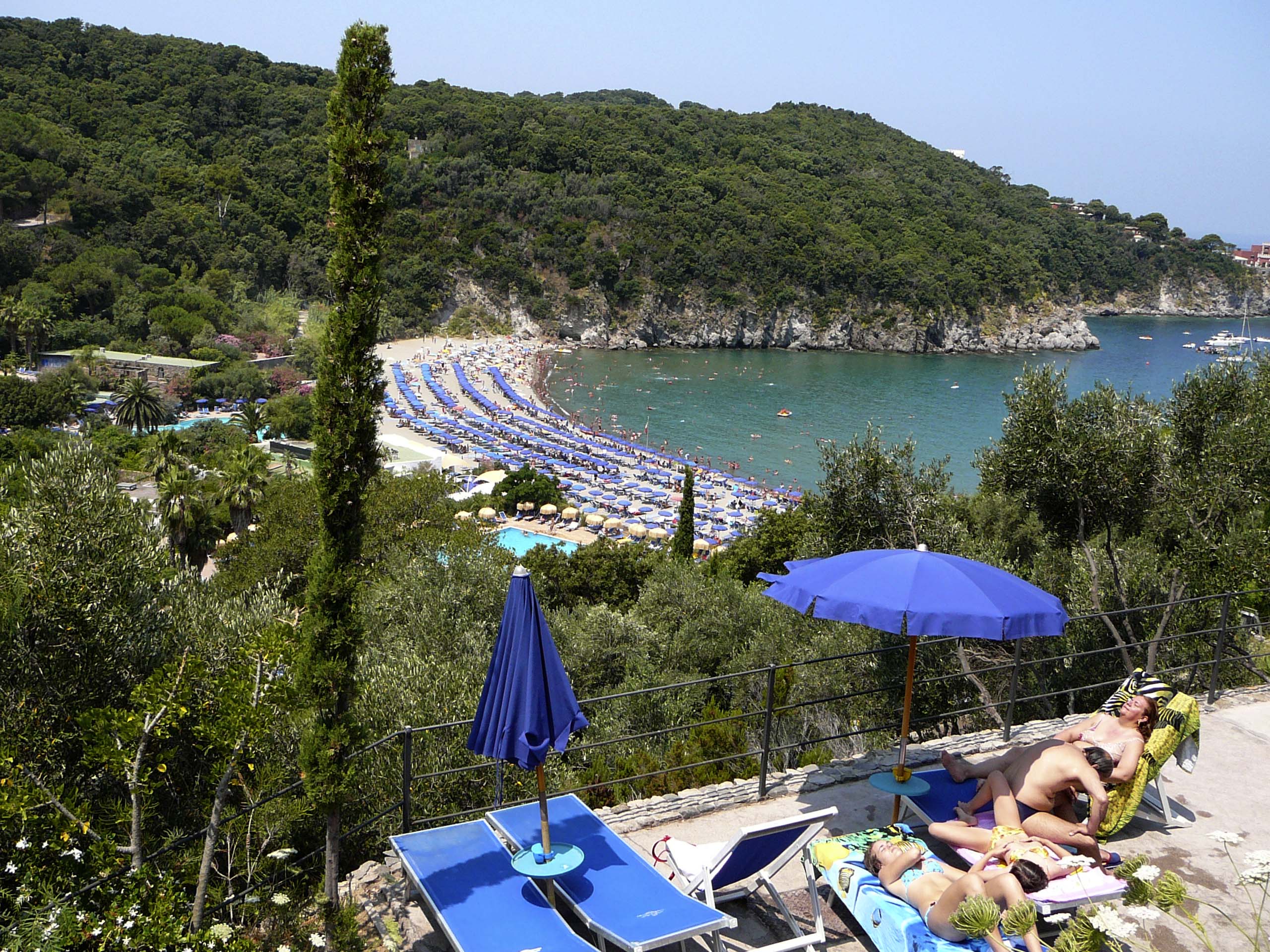 Besonders reizvoll und ein empfehlenswerter Ausflug von Panza aus ist die Thermalquelle Sorgeto bei Panza. Diese Quelle entspringt dem Fels direkt am Meer und erwärmt dort das Wasser. Die malerische Bucht erreichen Sie über gut ausgebaute Treppen. Das Baden in den von vielen runden Steinen geformten "Wannen" ist kostenlos und ein ganz besonderes Naturerlebnis! Ein kleines Restaurant versorgt Sie mit leckeren Köstlichkeiten und hält für seine Gäste auch Liegestühle bereit. Mit ihren heißen Naturwasserquellen lädt die Sorgetobucht das ganze Jahr über zum Baden ein.